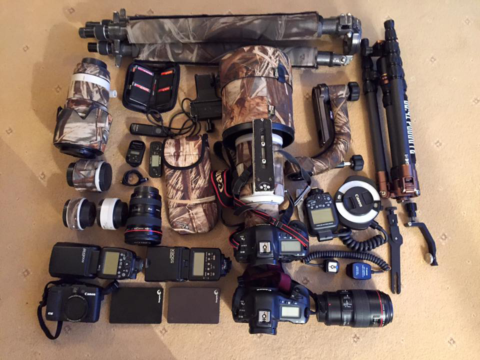 Even though this was 2016 there have been changes to the kit. The G16 has been replaced by a G5X, the three Mark II TCs have been replaced by a single 1.4 Mark III and one of the flashguns has gone. Added though is an additional lens my EF 24-70 f2.8 II. Why so much gear? I don’t go birding dawn till dusk and I like to change what I do, landscape, a bit of macro as well as the birding and if I can, a nightscape.