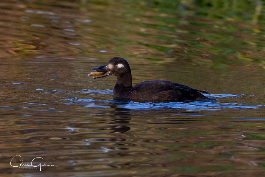 Female Velvet Scoter 28th December 2009 near Clitheroe feeding on freshwater mussels.